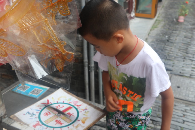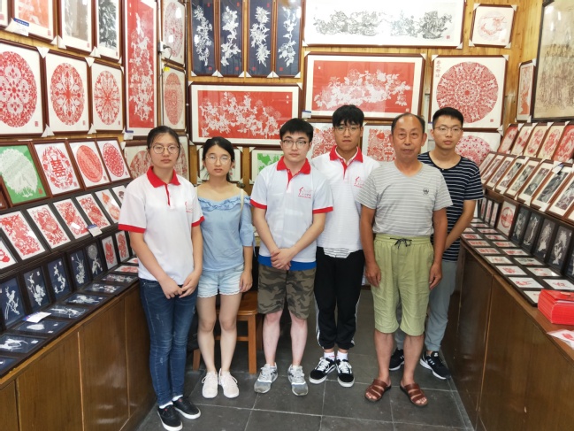 其次,看到郭沫若大师题写的“扬州剪纸”的匾额,小分队在其中找到了李烈烽大师,通过与他的交流,小分队了解到,剪纸也是一门创作的艺术,一件完整的作品需要一个长时间的构思的过程,最终呈现给我们的不仅仅是一幅画或是一个符号,它同样承载着独特匠心与悠久的文化。剪纸是中国最古老的民间艺术之一,它以其特殊的镂空的艺术技巧,带给人们一种不一样的感受。