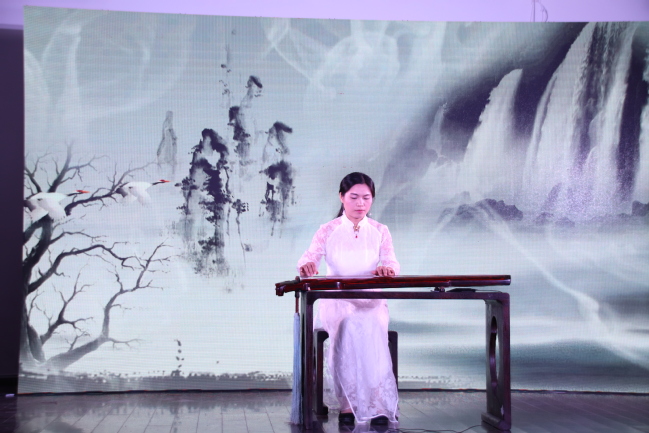 本次晚会由马维衡老师、张为老师和灵机古琴社参与演出。首先,晚会由一段古琴介绍视频为先导,充分展示传统古琴的风采与魅力,吸引同学目光,调动现场气氛,并在视频最后向观众展出了各个乐器演出时的礼仪与注意事项。活动正式开始后,由灵机古琴社表演的器乐合奏:“沧海一声笑”,通过清脆的古琴、沉闷鼓声,悠扬箫声展现出曲目的豪迈沧桑,展示出古琴演奏的多样性。一曲灵机古琴社团的“关山月”承接“沧海一声笑”,伴随诗朗诵表现出了古琴古声古色的情调,把同学带入到古时沙场将士角色之中。随后,是由张为老师带来的两首古琴独奏曲目:“流水”和“梅花三弄”。张为老师用娴熟的古琴弹奏技艺向同学展示这两首曲目如流水般的琴声,让人久久沉浸于古调柔和之中,曲末流水之声复起,缓缓收势,整体乐曲婉转柔美。随着演出的进行,由马维衡老师演奏的“神人畅”、“忆故人”,古琴社的“卧龙吟”与“阳关三叠”依次弹奏,赢得了同学的热烈掌声与喝彩。