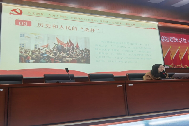 整场讲座分为三个部分:从无到有、从一到百、从百到百。从半殖民地半封建的历史国情到当代中国的伟大复兴,郑雨瑶老师为学员详细讲述太平天国运动中爱国人士的艰苦“求索”,五四运动及中国共产党第一次代表大会的召开中历史和人民的“选择”等重要历史。郑老师表示,以史为鉴,面向未来,在国家继往开来、发奋图强的过程中,青年学生应众志成城,不断培养自身历史使命感和社会责任感。