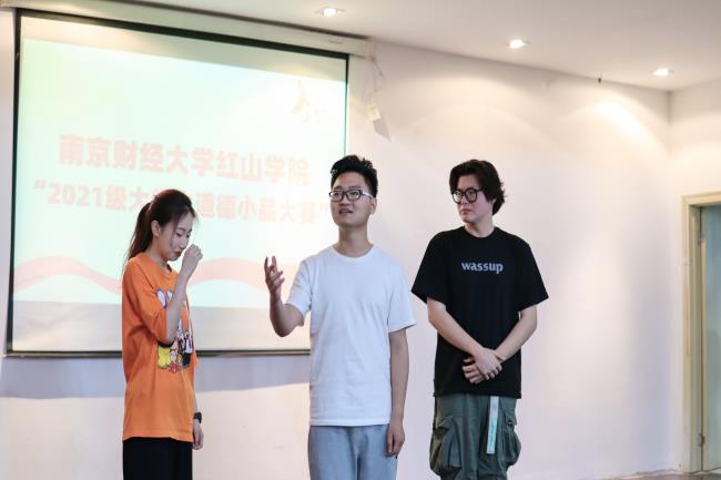 成才必先立德,真理来源于实践。比赛中,审计2153班《地铁故事》以地铁车厢为主环境,展现地铁中不同人的行为举止,从而表现人与人之间的素质差异。营销2152班《疫情之下的两面》向观众鲜明地呈现疫情期间,人们对疫情防控持有的两面态度。金融2151班《冷疫温情》通过对比疫情冷清与人情温暖,使观众们直观感受疫情下人与人之间情谊的浓厚。会计2153班《按时核酸》表演生动,紧扣当下防疫主题,警示人们要积极配合核酸检测工作,不可有侥幸心理。工商2153班的《一念天堂》使现场氛围愈发高涨,展现着人们的行为不断纠正和改善的过程。国贸2153班的《天网恢恢》以电信诈骗为主题,贴近学生生活,提醒同学们在日常生活中要提高对电信诈骗的防范意识。最后,比赛在法学2151班《领导来了》的扶贫工作表演中圆满结束。参赛作品紧贴时事,立足生活点滴,反映社会道德现状,引人深思。
