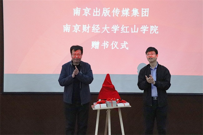 分享会开始前,陈南柯总经理代表南京出版传媒集团向学院捐赠图书,千继贤书记代表学院接受了赠书。