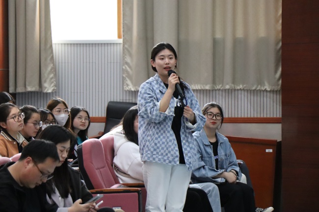 曹韵的分享诙谐幽默,受到师生热烈欢迎。对于同学的提问,曹韵做了详细解答。
