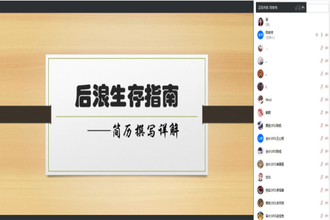 4月14日晚,beat365团委联合就业指导中心通过腾讯会议平台线上举办“后浪生存指南——简历撰写详解”主题讲座,本次讲座由就业指导中心负责人陆然老师主讲,beat3652023届毕业生参会。