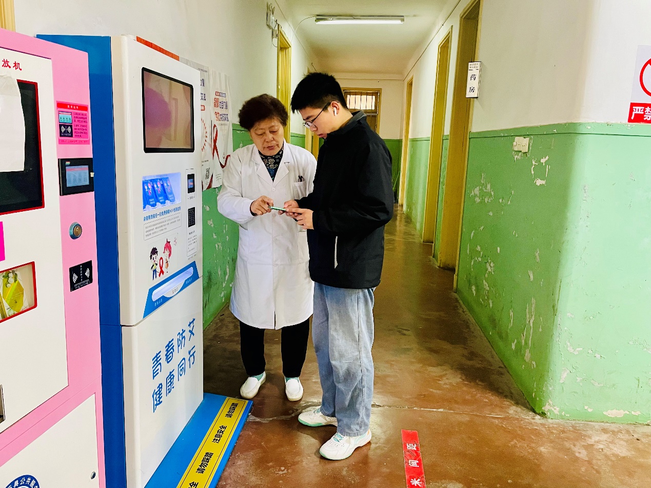 后勤保障处卫生所在室内设置试剂盒发放机,存放充足的试剂盒,引导同学们有序领取。发放现场,卫生所工作人员耐心讲解试剂盒使用方法,详细解释HIV检测的意义,普及艾滋病预防相关知识。据悉,目前共累计发放HIV试剂盒6900余盒。