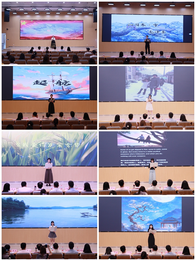 本次比赛分为独诵与合诵两个环节。经初赛、复赛层层选拔后的八位选手依次上台表演。