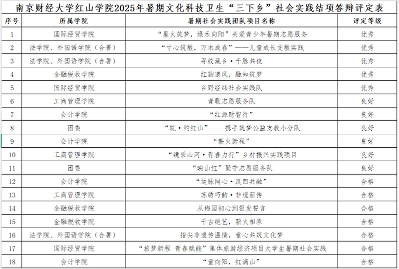 根据《关于公布beat365英国官方网站2025年暑期文化科技卫生“三下乡”社会实践校级立项的通知》相关安排,共有18支实践团队参加本次评定,现将评定结果公示如下。