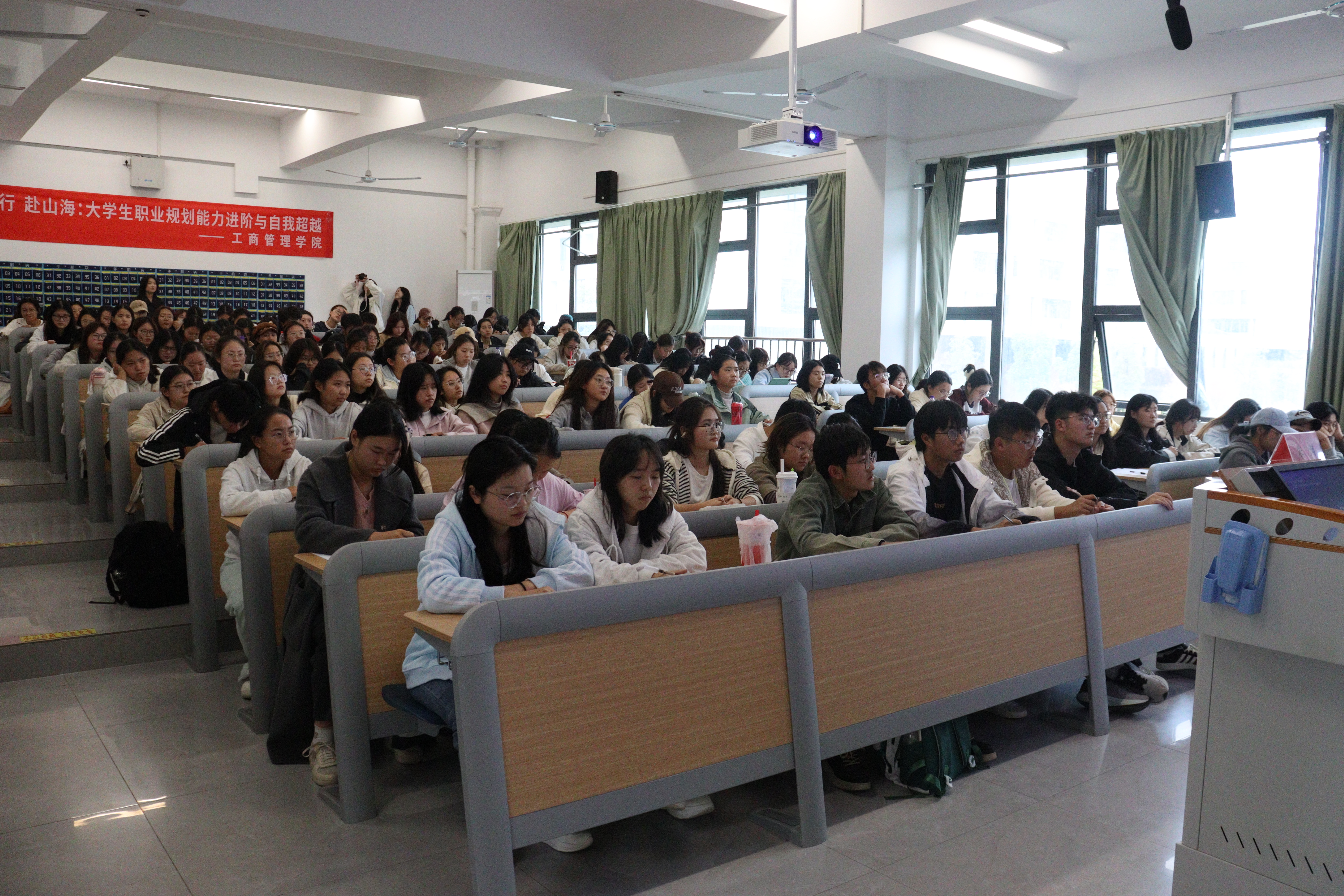 10月29日,工商管理学院团总支举办以“规划,践行,赴山海”主题的新学期职业生涯规划讲座。讲座邀请国家职业规划师朱洵分享经验,25级工商管理学生积极参与。