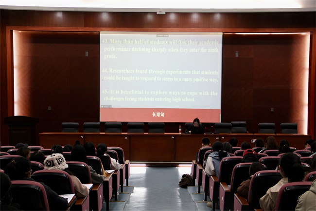 讲座现场连雨薇老师分享中同学们认真听讲同学们认真做笔记同学们认真做笔记为强化同学们的英语学习意识,找...