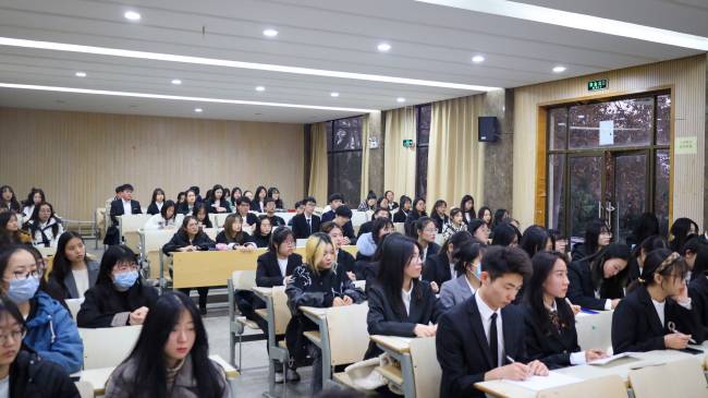 校友分享中同学们认真听听讲5月18日,beat365青马班于桥头校区四教报告厅开展“校友分享会”暨寻访优秀校友主...