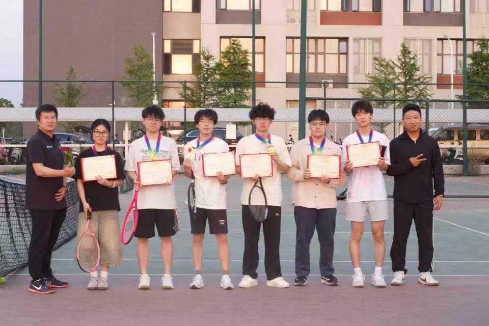 指导老师王旻、网球社社长与单打选手合影
