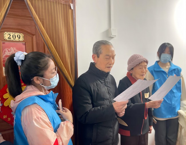 声声问候情意浓,句句叮嘱赤子心。志愿者们走进养老院居住区,与老人们聊天交流,了解他们的生活和身体状况,给予他们精神上的慰藉和支持。志愿者们耐心给老人们解决生活中的科技“小烦恼”,细心讲解如何使用智能手机,帮助他们更好地享受数字化生活带来的便利。宣讲环节,两位志愿者用通俗易懂的语言、生动形象的情景表演,提醒老人们增强电信网络诈骗、保健品诈骗的辨别和防范意识。