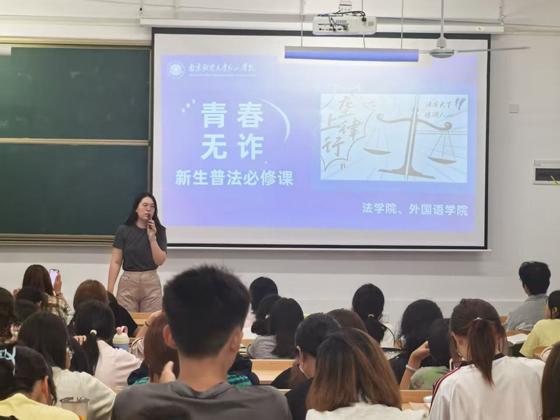 以法治之光,护航青春之路。9月25日晚,法学院与外国语学院的新生们迎来了一场特殊的入学礼——在2025年法治宣传教育周之际,青春无诈主题宣讲为他们送上了一把校园安全的密钥,通过这堂生动的法治课,为他们筑牢识诈防诈的思想防线。