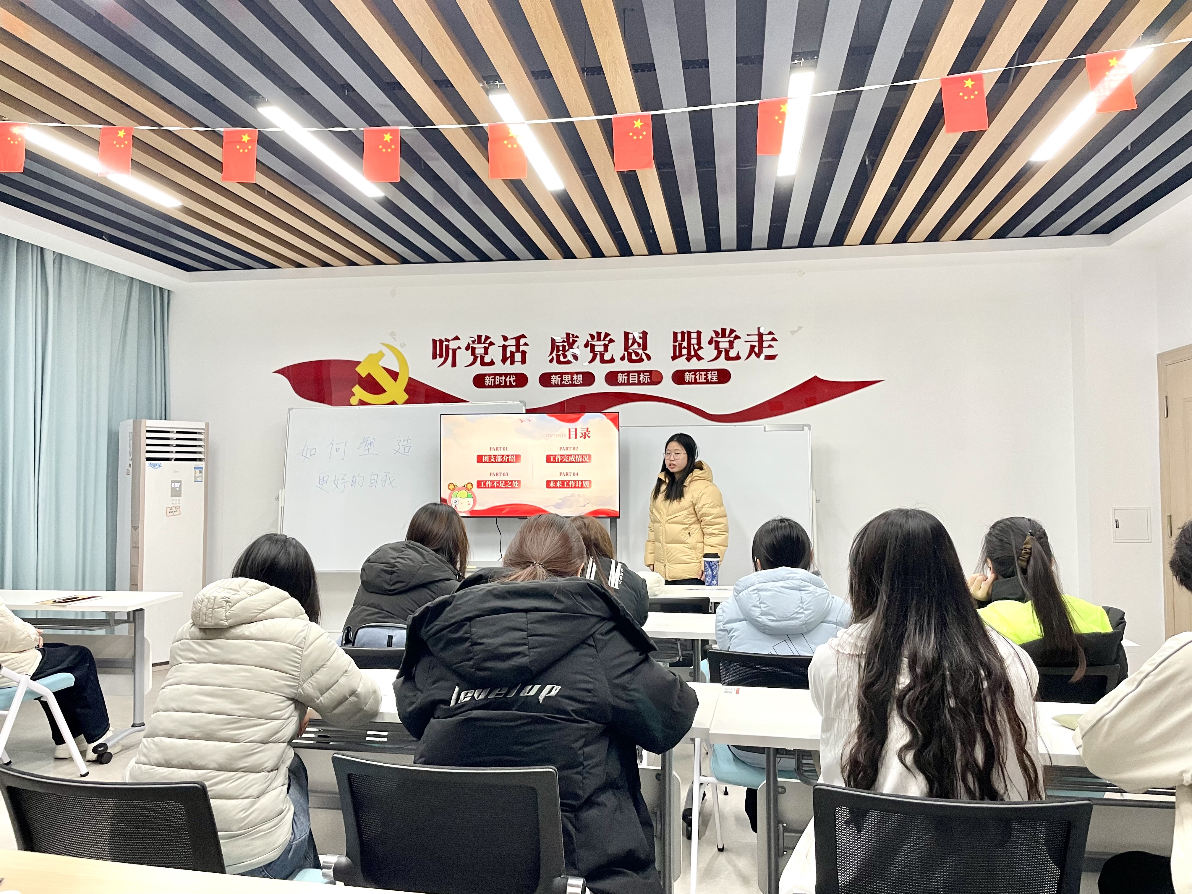 随后,各团支部书记依次进行述职,述职人员围绕思想引领、组织建设、活动开展、服务同学等方面,全面汇报了过去一学期的工作情况,认真总结经验成效,分析存在问题,并提出下一步工作计划。