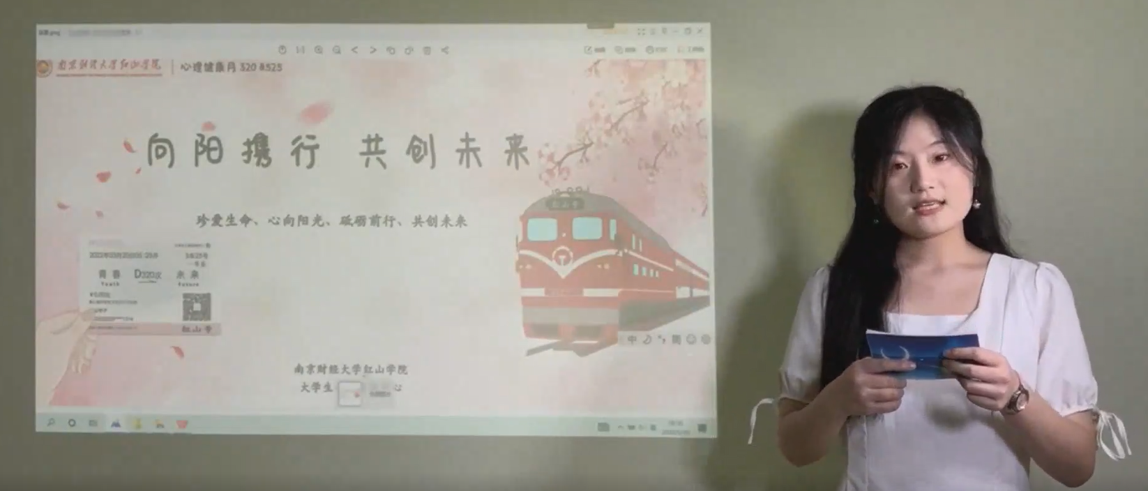 “向阳携行,共创未来”,作为525心理健康月主活动之一的“十佳心理委员”评选活动在5月25日晚圆满落幕。此次活动由大学生心理咨询中心主办,所有在岗心理委员自愿报名参赛。经过前期的报名、材料提交、材料初选等阶段之后,共10名同学进入到决赛现场展示阶段。分别是:财管2151班孙井洋、物流2151班朱雨轩、审计2054班张红、税收2052班杨灵欣、会计2156班邓金金、审计2055班程馨悦、会计2056班李华彤、会计2151班陈星霓、会计2051班高瑜珩、物流2152班靳玉洁。