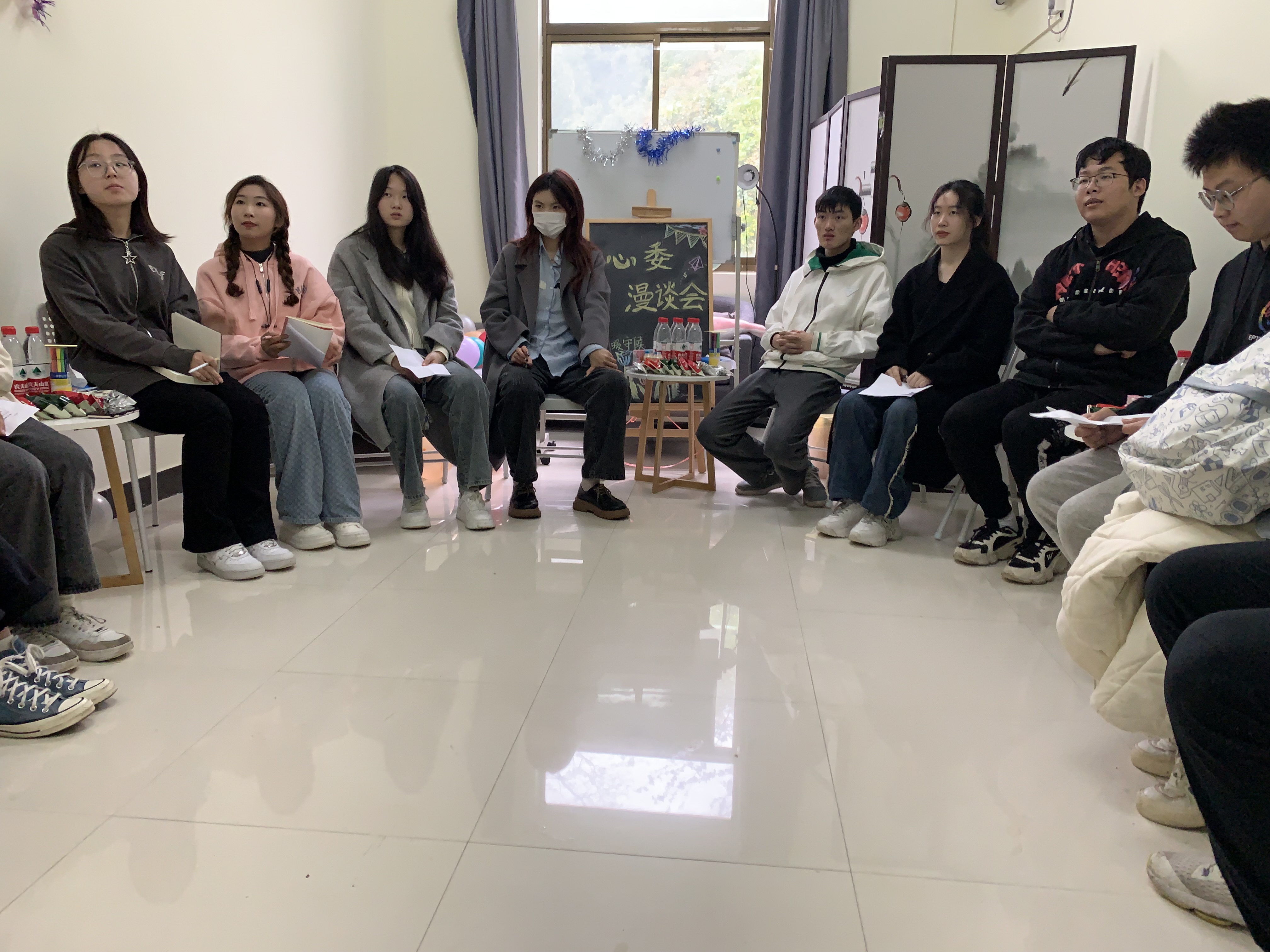 首先,在心理咨询中心老师的带领下,同学们通过“为自己署名”和“包剪锤”等游戏互动,迅速熟悉环境、放松身心,彼此之间交流加深,现场气氛活跃。接着,各位心理委员回顾日常工作,对自身工作进行总结,并做出积极分享。活动最后,通过“问题我来答”的形式,心理咨询中心老师对于心理委员所关心的“如何更好地帮助班级同学打开心扉”“应该开展什么样的班级心理活动”“如何提高帮助辅导员”等相关问题给予了相关建议。就“心理委员的认同感”“如何较早地发现身边同学是否有心理问题”等问题,心理中心三位老师也和同学们进行了深入的探讨。