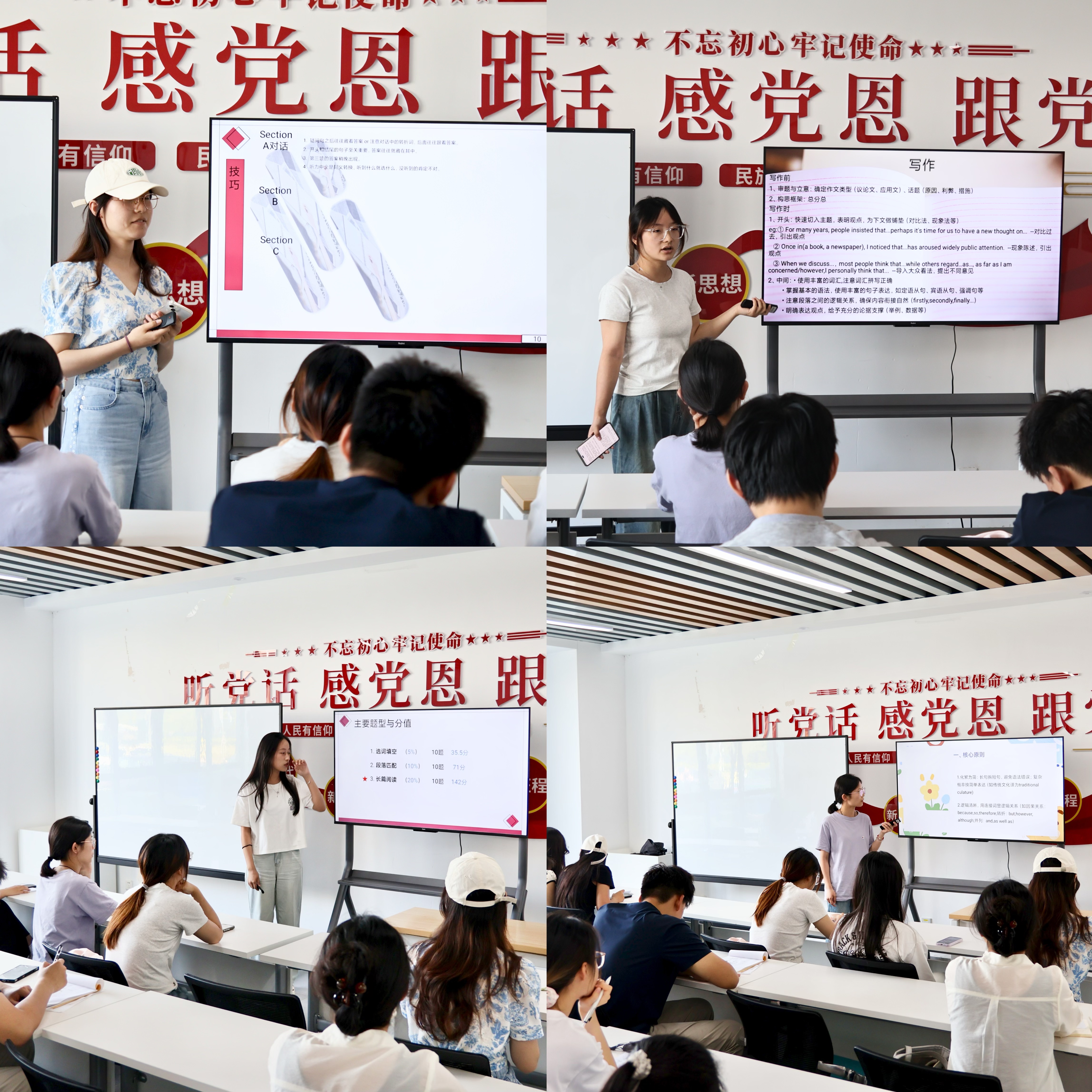 活动伊始,李慧秋老师立足近年四六级考试动态,系统梳理了各题型特点与备考重难点。她特别强调基础积累与应试技巧并重的备考理念,针对不同英语水平的学生,分别提出了阶梯式提升方案,为在场同学指明了冲刺方向。