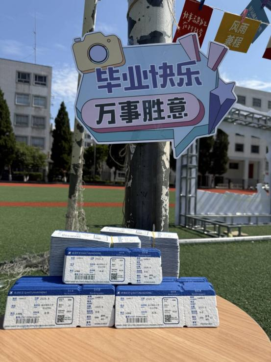 活动现场,最引人注目的当属领取通往未来的“机票”:种子卡环节。精心设计的种子卡形似机票,正面印着出发地和目的地,背面则标注着种子品种和种植说明。毕业生们手持种子卡,仿佛握住了通往未来的通行证。“这颗种子就像我的梦想,我会把它种在家乡,看着它和我一起成长。” 外国语学院毕业生李同学轻轻抚摸着种子卡说道。大学生心理咨询中心表示,希望通过这小小的种子,寓意毕业生们带着母校的期望,在未来的土地上生根发芽,绽放光彩。