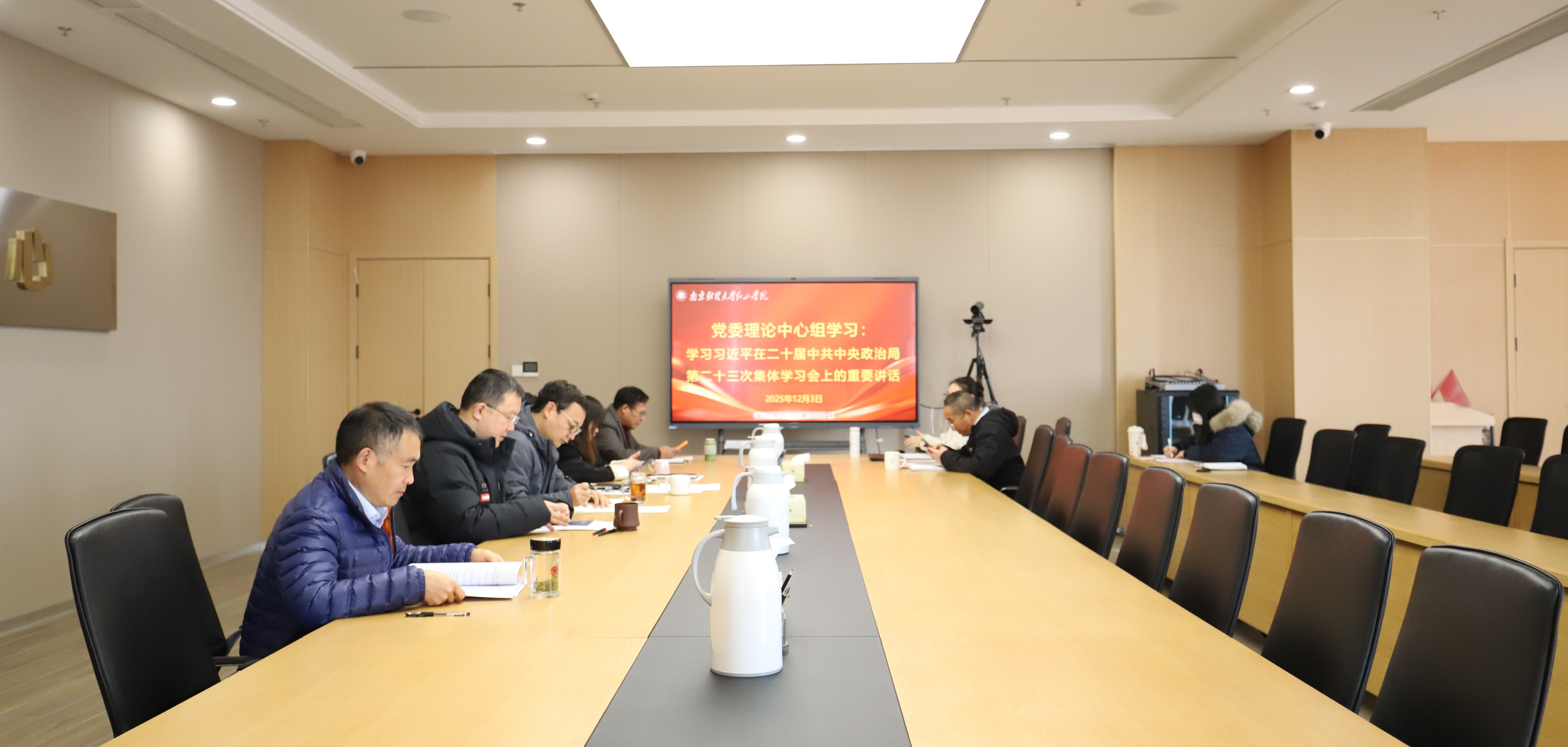 12月3日上午,beat365党委在图书馆620会议室召开党委理论学习中心组集中学习,专题学习习近平在二十届中共中央政治局第二十三次集体学习会上的重要讲话,全体党委委员参加会议。会议由党委书记孙彬主持。