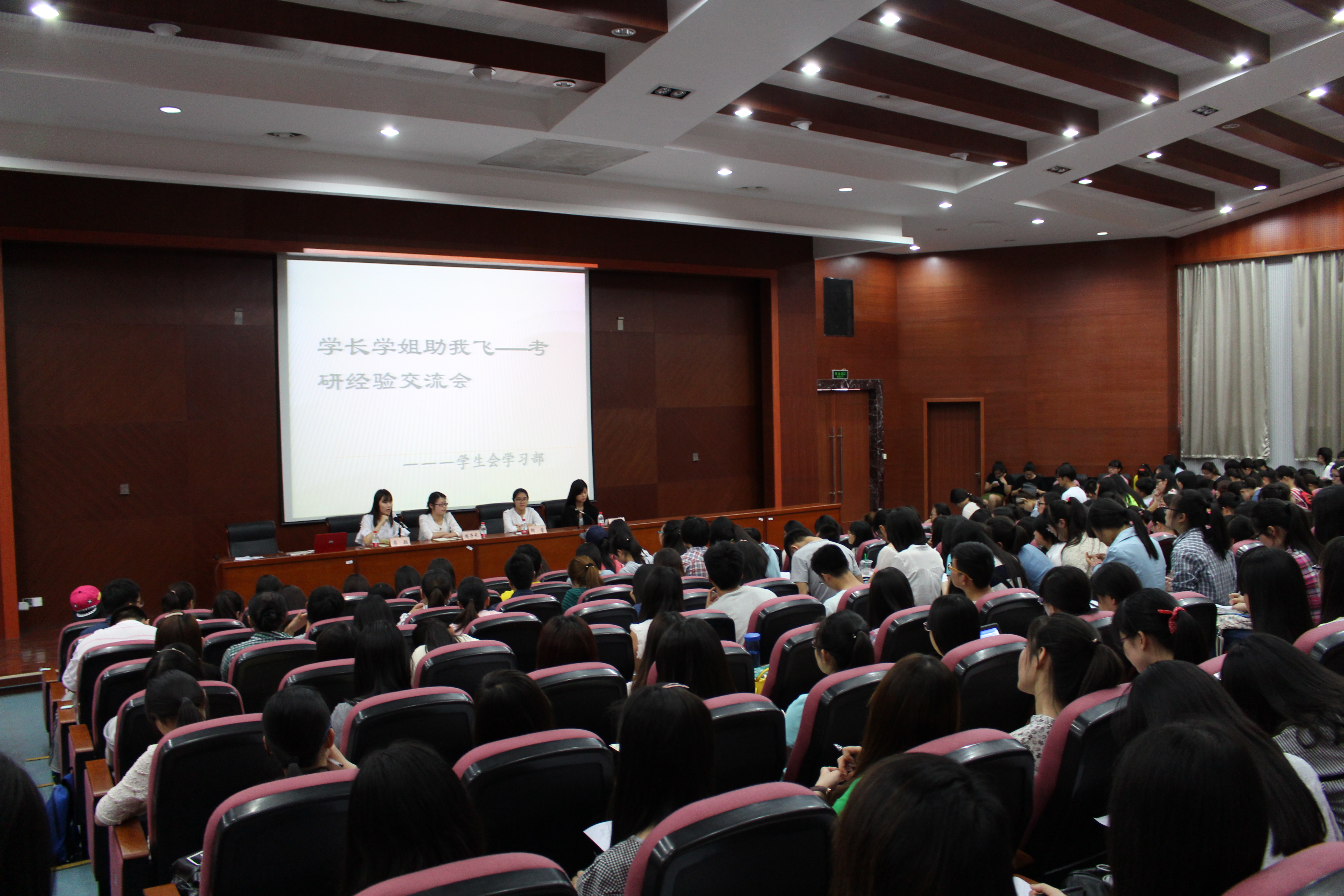 在学风建设月期间,为营造良好的学习氛围,同时增加学生对考研的了解,由学生会学习部举办的考研经验交流会于5月20日在四教报告厅举行。此次交流会由2011级的房颖、邵莹、周子元、顾叶蓁4位考研成功的学姐来与大一大二的同学们分享自己在考研路上的经验:首先要结合地域以及自身情...