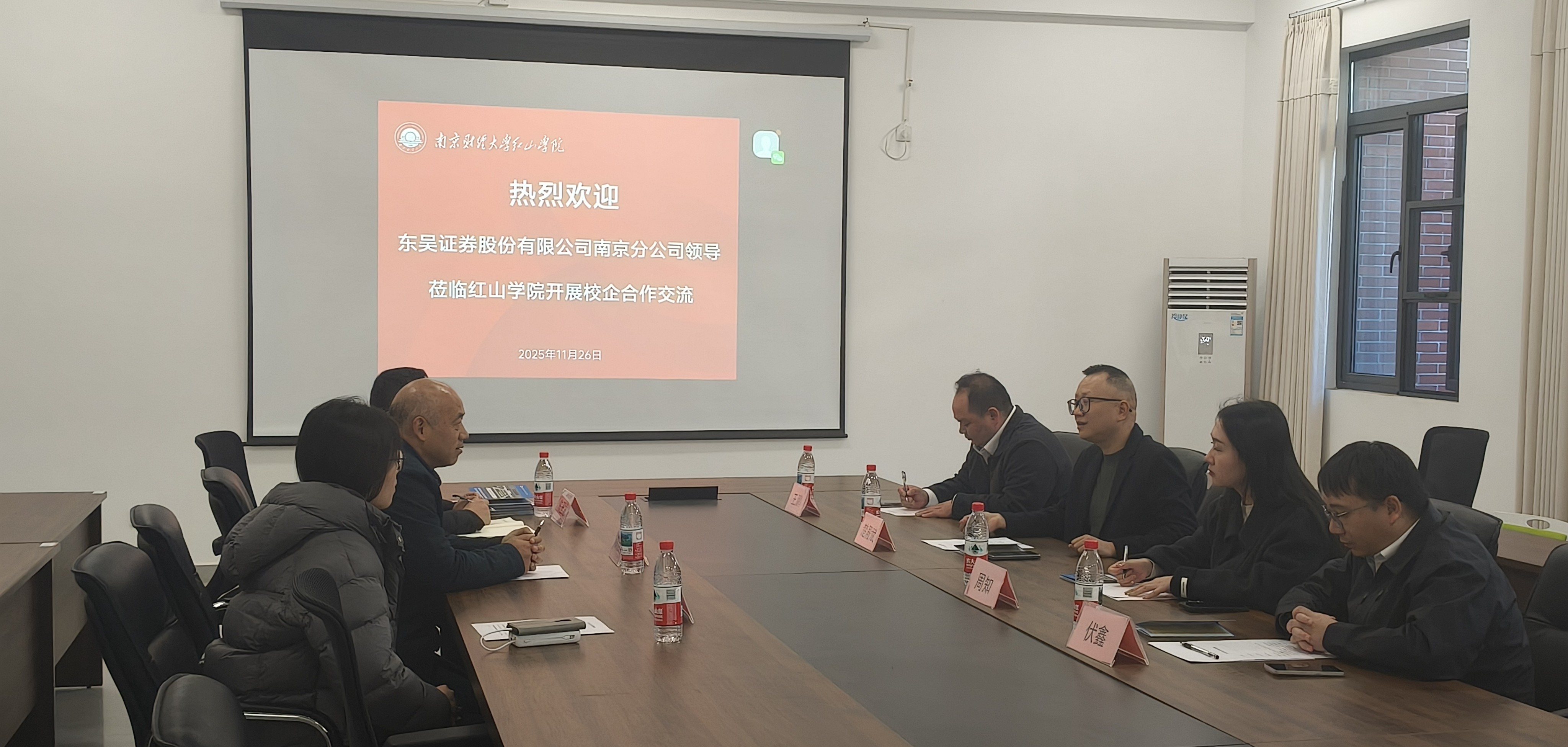 11月26日下午,国际经贸学院与东吴证券股份有限公司校企合作座谈会在智圆楼B222会议室举行。东吴证券股份有限公司秀财事业部总经理助理、南京分公司副总经理楚殿斌,营业部总经理王鹏,人事经理周知,团队负责人伏鑫,国际经贸学院党总支书记、院长刘志国,团总支书记兼学工秘书宋...