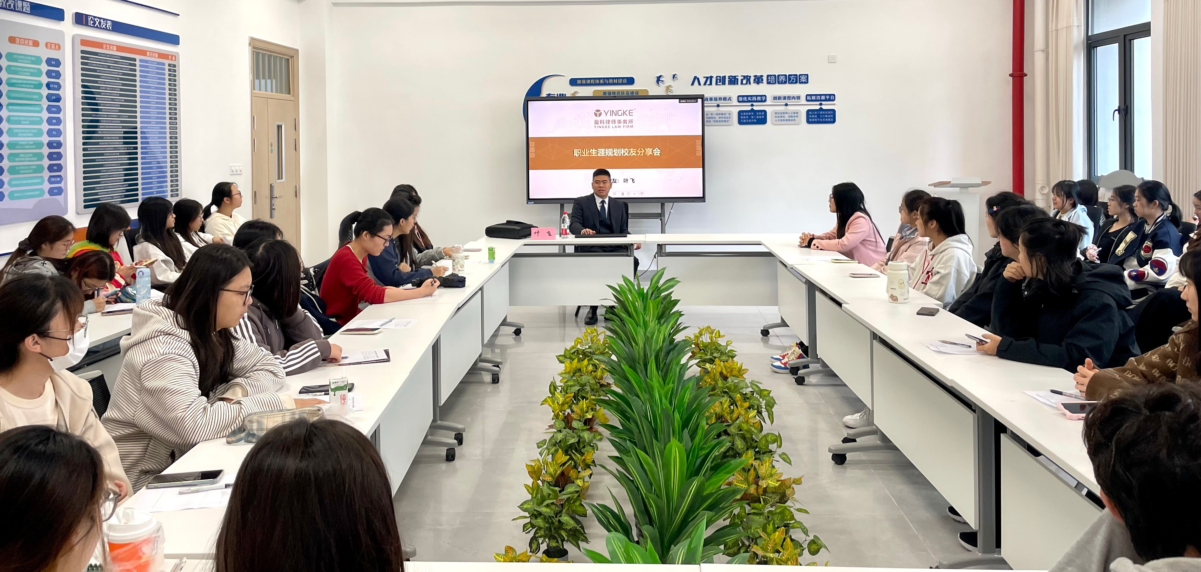 11月14日,由法学院主办的“职业生涯规划校友分享会”在智圆楼B329会议室顺利举行。本次活动特邀2010级优秀校友、北京市盈科(南京)律师事务所专职律师叶飞作专题分享。