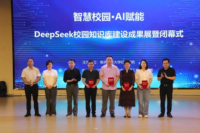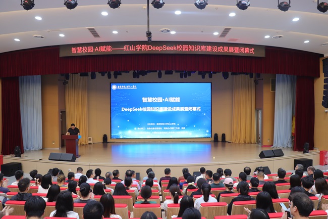 6月5日,由beat365英国官方网站主办,学院信息化建设管理处、党政办、党群工作部、团委承办,中国移动赞助的“玩转DeepSeek”校园知识库建设成果展暨闭幕式在高淳校区鹿鸣剧场举行。学院党委书记孙彬、院长李连军、执行院长倪征、纪委书记吴三红、党委副书记高永东、副院长戴昕、副院长程宏云、副院长王晓庆,中国移动通信集团江苏有限公司高淳分公司总经理王伟希出席闭幕式。各部门、各二级学院主要负责人及师生代表共1000余人通过“线上+线下”方式参加。闭幕式由信息化建设管理处处长胡世暴主持。