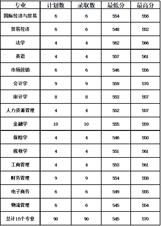 2019年浙江省各专业录取分数线