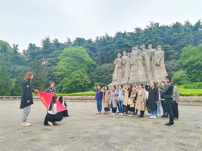 4月21日下午,天空不时飘着雨,文法系党支部全体党员,来到庄严肃穆的雨花台烈士陵园,在埋下忠骨的青山脚下,重温入党誓词,感怀英雄心迹。