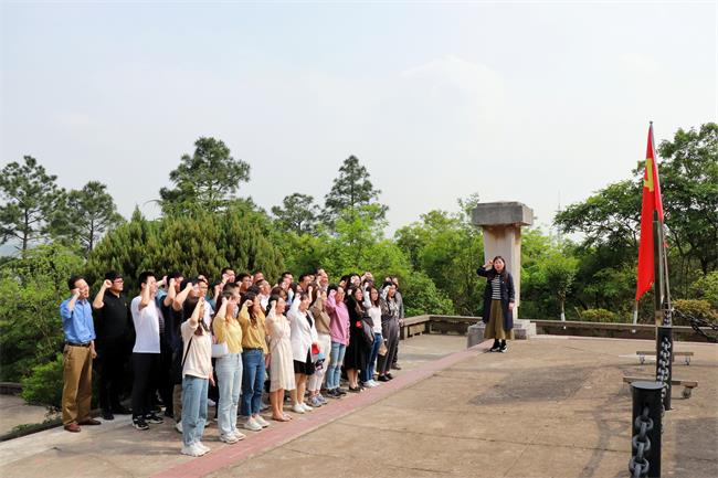 参观结束后,全体党员拾阶而上来到韦岗战斗胜利纪念碑前。在红山学院党委副书记、学院副院长王晨婷同志的领誓下,全体党员一同高举右手,面对鲜红的党旗重温入党誓词。铿锵有力的誓词,激励着广大党员同志坚定理想信念,不忘初心,践行使命担当。