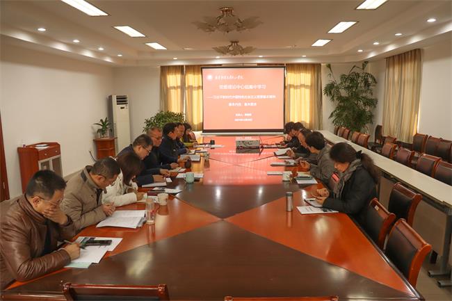 12月29日上午,beat365在桥头校区行政楼311会议室召开党委理论学习中心组学习会议,专题学习习近平新时代中国特色社会主义思想的基本精神、基本内容、基本要求。红山学院院长李连军同志做主题发言,全体党委委员、各职能部门负责人参加学习并交流讨论。会议由beat365英国官方网站桥头校区管委会主任、红山学院党委书记鞠明富主持。