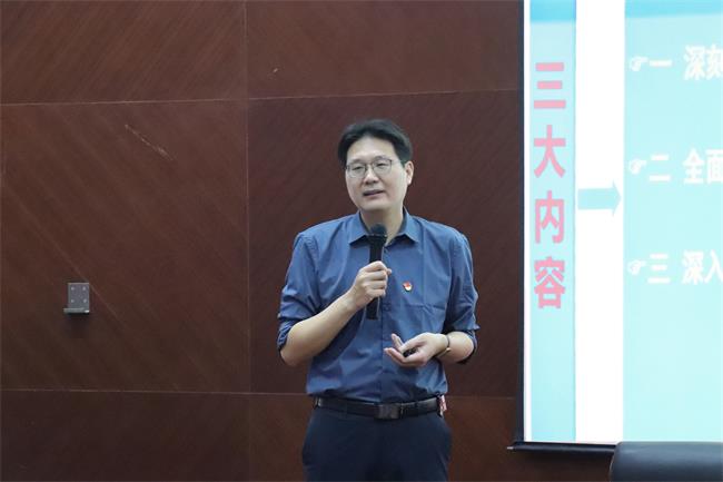 彭智勇教授以“学习贯彻党的二十大精神”为主题,从“深刻领会党的二十大的大会主题”“全面解读党的二十大报告的主要内容”“深入贯彻落实党的二十大精神”三大方面深入解读了党的二十大报告丰富内涵。他指出,党的二十大宣示了我们党在新征程上举什么旗、走什么路、以什么样的精神状态、朝着什么样的目标继续前进,总结了过去五年的工作和新时代十年的伟大变革,描绘了全面建设社会主义现代化国家、全面推进中华民族伟大复兴的宏伟蓝图,对指引党和人民向第二个百年奋斗目标进军、奋力谱写新时代中国特色社会主义更加绚丽的华章具有重大而深远的意义。彭智勇教授强调,党的二十大已吹响新号角,我们要深刻领悟“两个确立”的决定性意义,增强“四个意识”、坚定“四个自信”、做到“两个维护”,学习好贯彻好党的二十大精神,踔厉奋发永向前,团结奋斗谱新篇。
