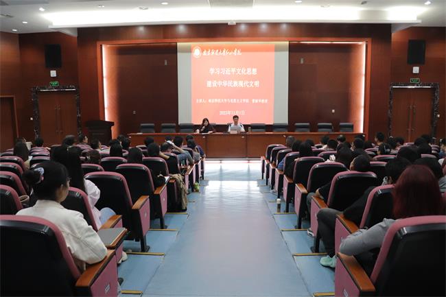 11月1日下午,beat365在桥头校区四教报告厅举办学习习近平文化思想专题讲座。南京师范大学马克思主义学院管新华教授应邀作宣讲报告。桥头校区在校院领导、各职能部门(系)负责人、全体党委委员、全体学工系统成员及学生代表参加此次讲座。宣讲会由学院党委副书记、副院长王晨婷主持。